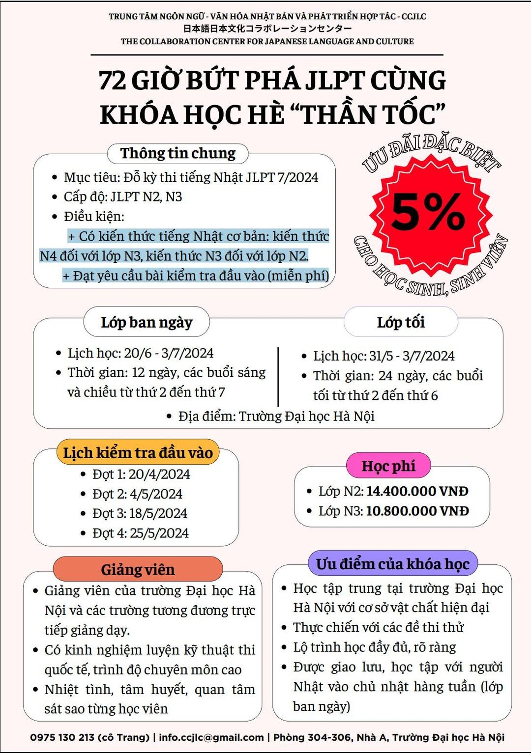 *Ưu đãi đặc biệt: giảm 5% cho học viên là học sinh, sinh viên.